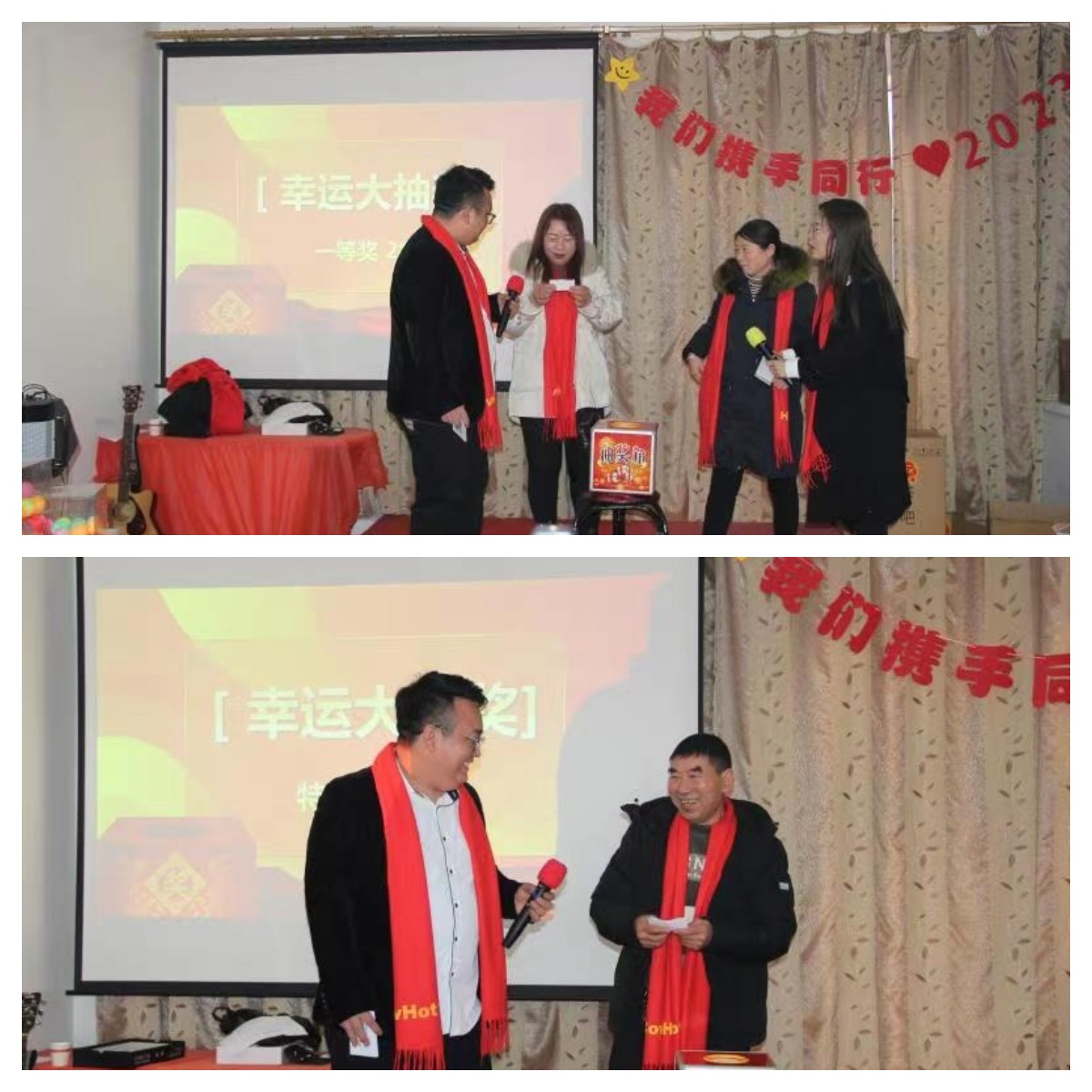 年会中最激动人心的要数幸运大抽奖环节,抽奖分为三等奖,二等奖,一等奖和特等奖,由公司精心准备,每一轮的奖品都是非常丰厚,在充满期待中,很多同事都满载而归。