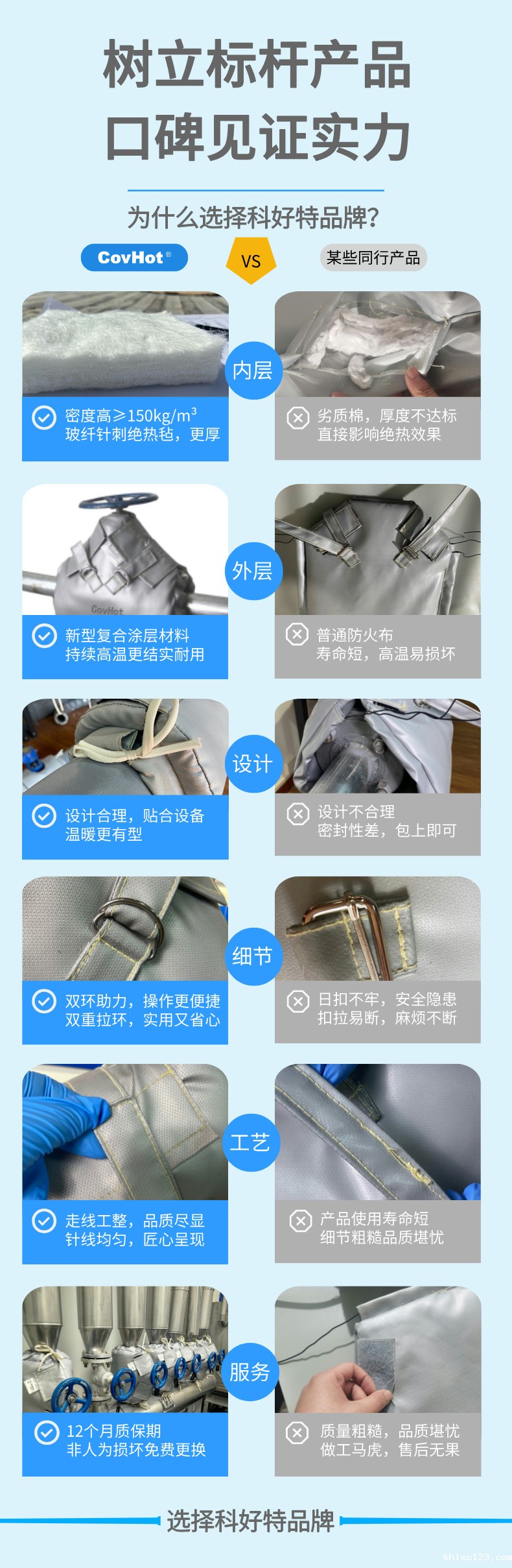 3. 维护的便利性,如果阀门需要维修或者拆装,普通岩棉保温拆除后无法二次利用,柔性可拆卸阀门保温套可以循环使用。