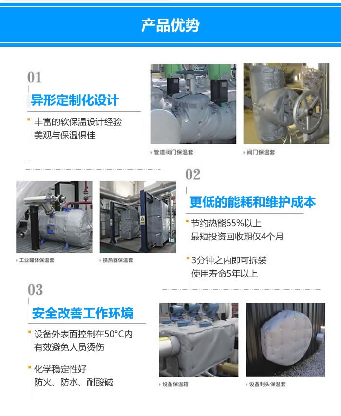 止回阀保温套优势原因主要有一下几点:一是降低能量损耗,保温套可有效减少止回阀温度流失,室外设备可防止冬季冰冻。二是经济效益明显,可拆卸柔性保温套可反复安装拆卸使用,大大降低使用成本。三是保温套可耐酸碱,对止回阀也是一层保护,可以减缓止回阀的外表生锈老化。