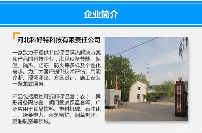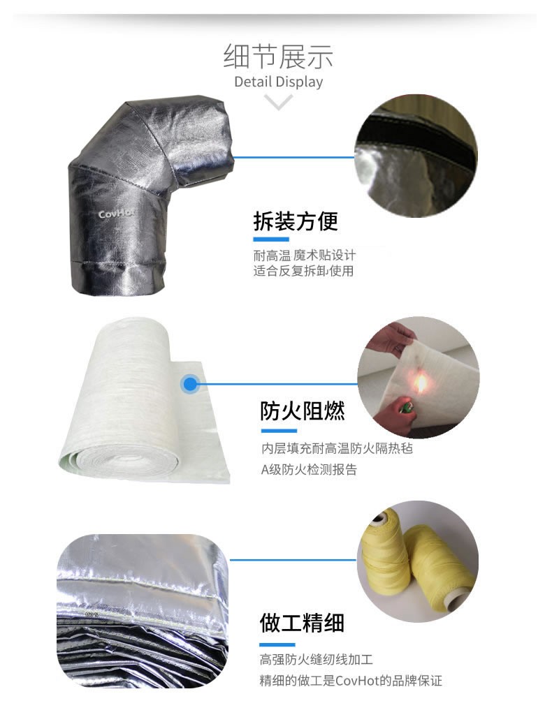 在实际的蒸汽管道保温中,当对某些设备、阀门、法兰等管件进行维修、更换时,传统的保温方式并不适合安装在需要定期检查、维修的阀门上,但是可拆卸保温套却可以很好的解决这一问题。由于不可拆卸式的绝热方式,要想对设备进行维修、更换,只能损坏原有的隔热机构,重新购买安装保温设备。可拆卸式保温套是一种专门使用于蒸汽管道保温的一种好方法,下面我们来了解一下它的性能及特点。